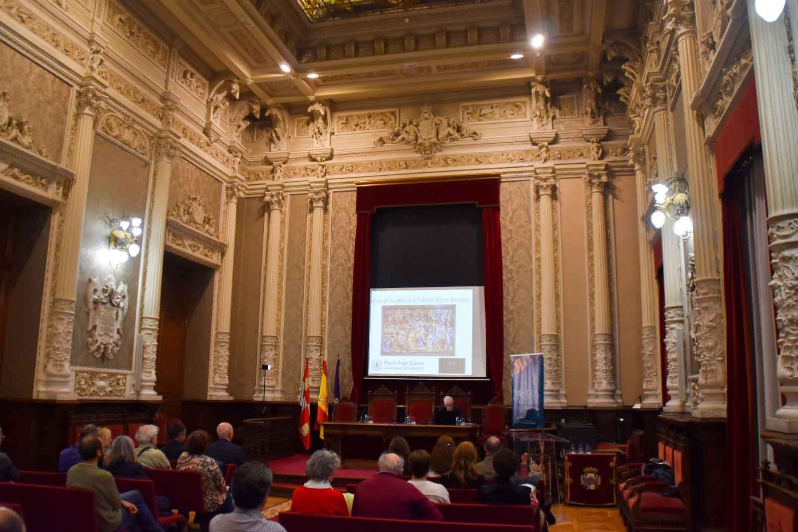 El profesor Miguel Ángel Zalama (Universidad de Valladolid) abrió la sesión con “Tapices procedentes de la catedral de Palencia hoy en Bruselas”, un estudio que reconstruye el destino de estos magníficos tejidos y su valor dentro de la historia del arte europeo.