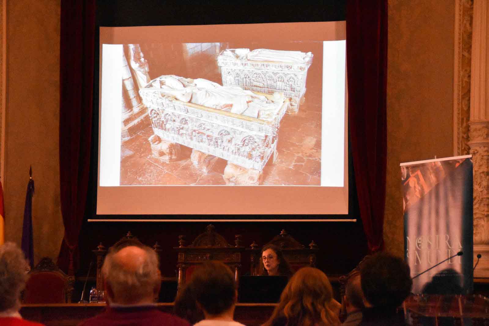 Le siguió Laura Rodríguez Peinado (Universidad Complutense de Madrid) con la ponencia “La dispersión internacional de tejidos medievales procedentes de los ajuares funerarios de Castilla y León: el conjunto de Villalcázar de Sirga”, que puso de relieve la calidad y la carga simbólica de estos testimonios textiles.